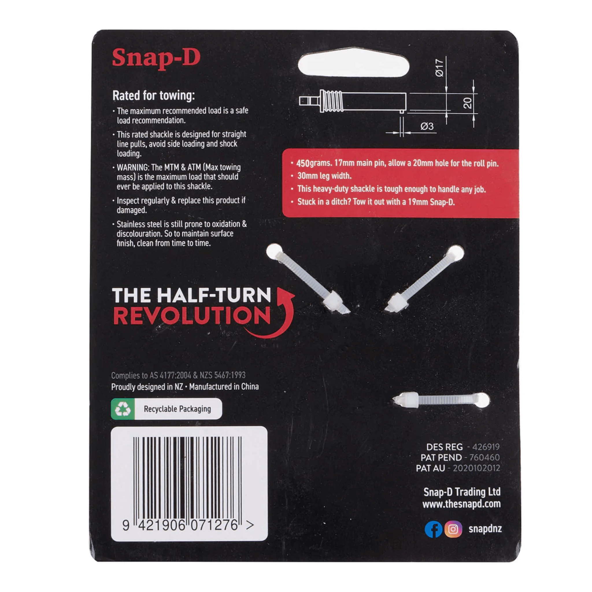 The 17mm D shackle and 19mm Bow shackles are a heavy-duty shackle, ideal for winching on that broken-down trailer or car.